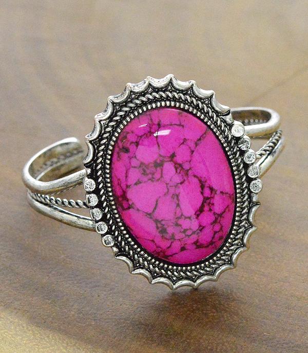 Pink Oval Semi Stone Cuff